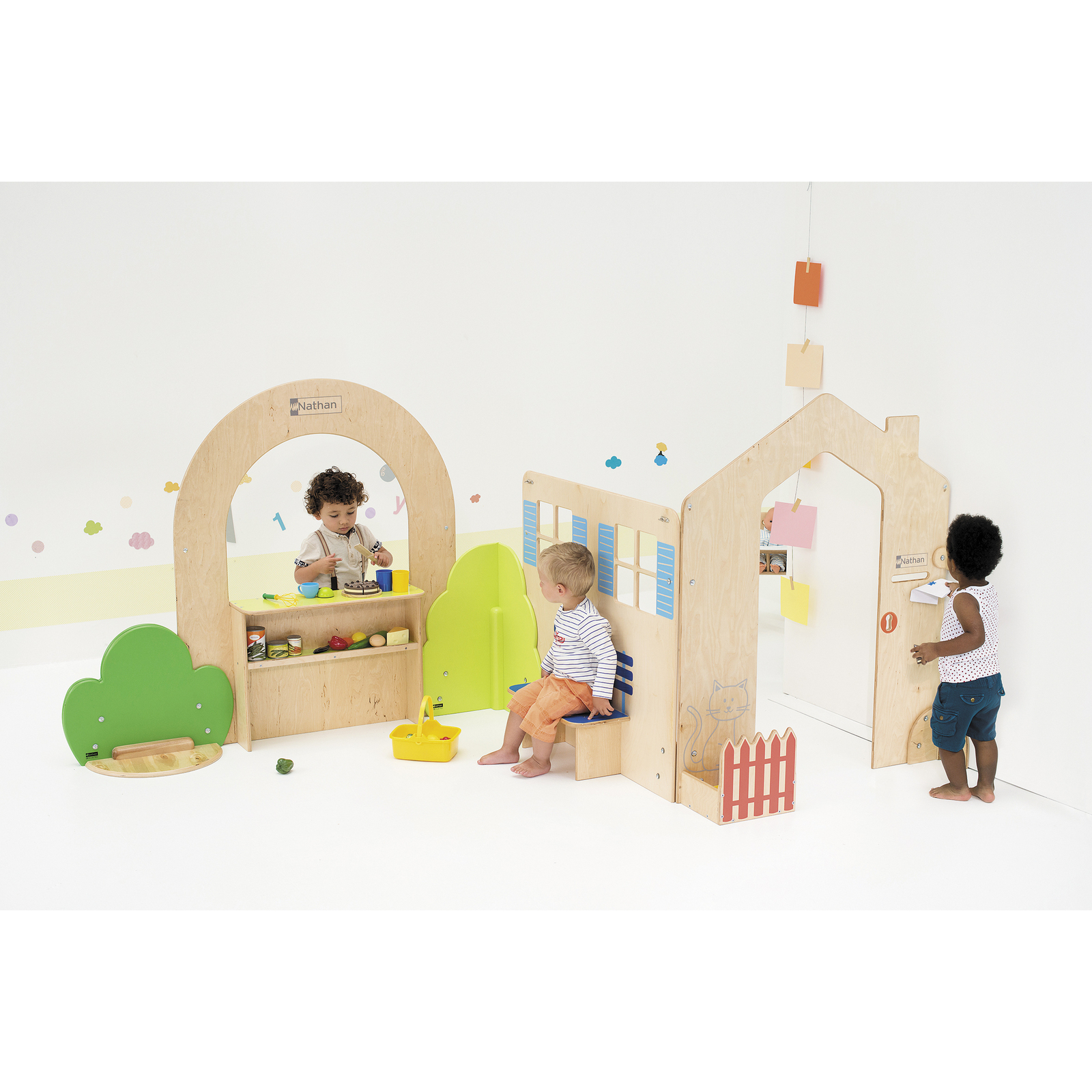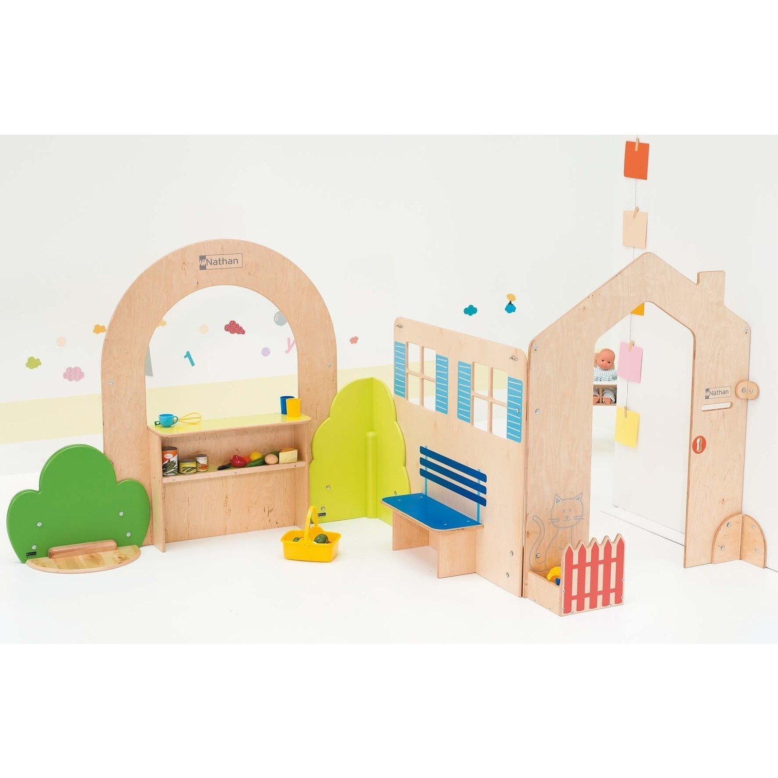 Un concept original et ludique de façades à combiner entre elles pour créer de nombreux espaces de jeux.Les façades sont stables lorsqu'elles sont assemblées en angle. Pour des assemblage en ligne, les façades doivent être fixées au mur et complétées par des buissons Clorofile vendus séparément. Façades en bois contreplaqué épais (15 mm) avec décors sérigraphiés sur 1 face résistante aux chocs.Encombrement au sol : Assemblage en angle : 257 x 111 cm ; H : 120 cm. Assemblage en ligne : 382 x 22 cm ; H : 120 cm.Livrés à plat avec 1 notice de montage.